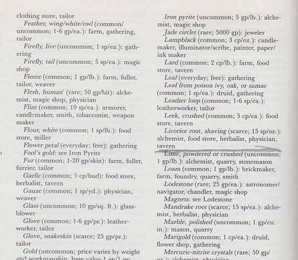 I do still find the list useful when wanting to come up with the contents of a wizard’s lab for an adventure.