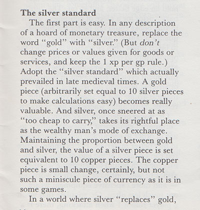 An excerpt from the explanation on how to incorporate a silver standard in your campaign setting.
