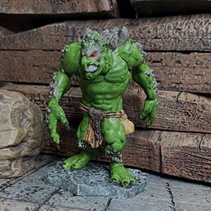 This troll variant is an example of something that happens to me with some regularity when it comes to homebrewing: I get my hands on a miniature and it serves as an inspiration for my own stat block for it. In this case, when I was searching for more troll minis to use for running “The Wayward Wood” from Dungeon #32 (which has trolls as its main antagonists) I stumbled across the “Rock Troll” by Reaper Miniatures (part of their Bones lines) on my favorite site from which to buy minis, Gnomish Bazaar.