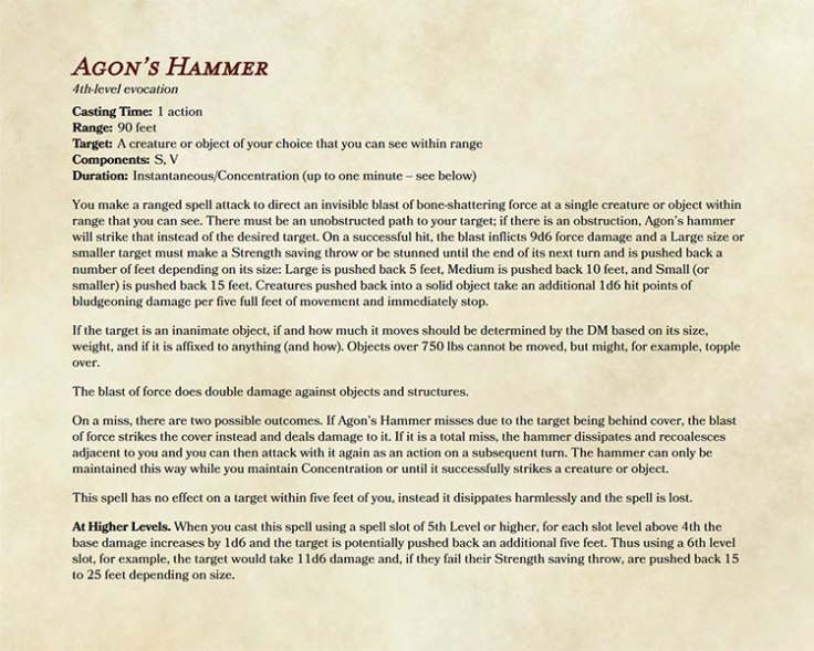 Agon’s Hammer is a spell meant to represent raw power that is difficult to control.