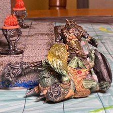 Rollo Snow knocks down a Troglodyte Mystic the old-fashioned way, by bringing it to 0 hps.