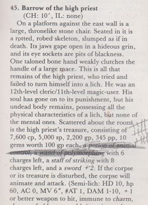 The site of the adventure is HUGE, however, and I think if and when I do convert and run it, I will have to find a way to shave down on the 45 numbered locations (not including several that are broken into multiple sub-locations) to something more manageable. While I have run adventures with as many as 33 numbered locations, I think somewhere in the neighborhood of 20 to 30 is best of a big adventure. What? Did you think I would be an advocate for the five-room dungeon? Have you even been reading this site?