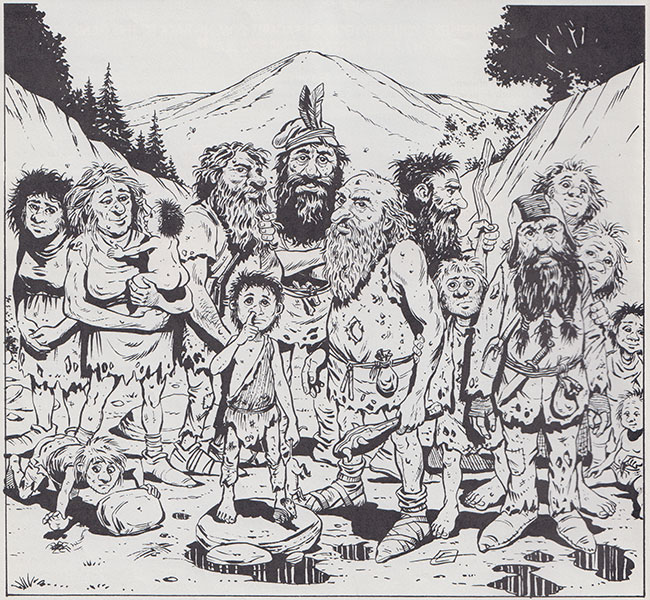 Roger Moore (who at this time was on Dragon’s editorial staff but would soon become Editor-in-Chief when Mohan left to follow Gygax) gets the issue’s articles going with “All About Gully Dwarves.” Gully Dwarves are a sensitive topic among many D&D gamers and fans of Dragonlance. The representation of them both in gaming material and in the Dragonlance novels is kind of offensive. I am far from the only person to write about this or run across the problem when prepping for games set in Krynn. Sure, there are no real gully dwarves to be offended by their depiction and they don’t directly represent any real-world people or culture but nevertheless the descriptions of them resonate with stereotypes of “degenerate” poor people as stupid and child-like at their very essence. Add to this the cognitive dissonance of both describing how their treatment has driven them to the margins and suggesting they bring it on themselves for being dirty and living in filth and how collectively as a “race” they are incapable of holding any “civilized” values. Moore also writes about how they are frequently exploited as slaves and are nicknamed “dumpmen” and “muckers.” Worst of all, perhaps, Krynn’s gully dwarves are the results of intermarriage between two other “races,” gnomes and dwarves, adding another layer of cringeworthy resonance with real-world racialized ideas.