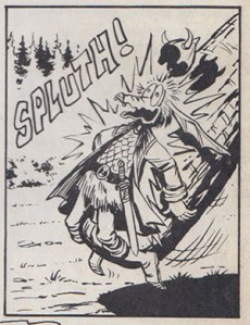 Finally, this issue’s Wormy is a two-page story featuring two tree trolls playing their version of the Assassin game (the kind found in Steve Jackson’s Killer and popularized in movies like 1985’s Gotcha!). As usual his art and coloring is amazing. SnarfQuest is notable for developing the character of the death leach, which would come to be my favorite. It also reinforces how talented Larry Elmore is. While he is known for his paintings, he really is an expressive cartoonist who knows how to pace a page well. And heck, who doesn’t love a good—SPLUTH!—comic sound effect used to comic effect?