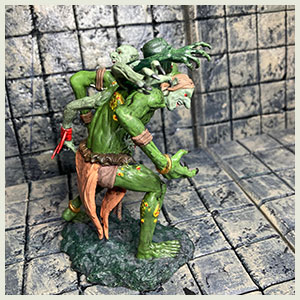 It was around that time that I was also browsing Gnomish Bazaar looking for more trolls to add to my miniature collection for running that troll-heavy adventure and I happened to spot a picture of something called a Dire Troll. I don’t know what a Dire Troll is or where the stats for one might be found, but the general look fit my conception of a mutated and constantly mutating troll, so I ordered one and painted it. It became Gluklux, the Gibbering Troll.