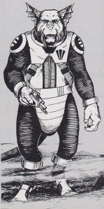 The actual ARĒS section has a bunch of interesting content. “Star Law Returns” builds on a previous Dragon article on the Star Frontier law enforcement agency to consider, what if your players don’t want to be lousy space cops but you still want to use them as an NPC organization? “Hexes and High Guards” presents revised space war rules for the Traveller game. “The Exterminator” is a Gamma World encounter with a killer robot that I actually converted for a homemade dungeon I never got to run for my high school D&D group. “The Kzinti Have Landed!” present a new alien species of carnivorous cat people that refuse to communicate with herbivores and have “unintelligent females.” Sigh. To make them even worse, the article explains that the males of this species “frequently forget that females of other species are usually sentient beings…they instinctively consider females to be inferiors.” This is pre-Ferengi who would have their own canonically repugnant ideas about women. Their spaceships kinda look like old school Romulan vessels. “The Marvel-Phile” gives us more World War II info: the stats for Bucky, the first Baron Zemo, and Baron Strucker.