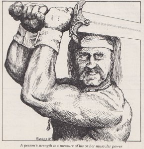 “The Six Main Skills” by Jefferson P. Swycaffer is not about what we call “skills” in the current game, but about the six ability scores. Rereading it now, it is not only boring but I find discussing D&D’s stats in real world terms to be a waste of time. You just have to accept that D&D is a game with abstracted ways of measuring what are ultimately complex categories of human (and demi-human) ability. My reaction to this article is compounded by Kim Mohan’s follow-up article, “Room for Improvement,” which examines the issue of increasing ability scores. I think a general move away from training as a required part of D&D character advancement and simulationism as a goal, along with the eventual adoption of built-in ability score increases makes this article feel even more outdated than most.