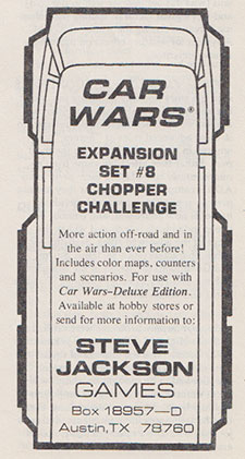There is an ad for Car Wars on the second page of that two-page article. I played a lot of Car Wars starting around 1986 and would for the next few years. God, I miss that game and wish I could find people to play it with me.