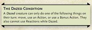 According to Flee, Mortals!, a Dazed creature can only do one of the following things on their turn: move, use an action, or use a bonus action. However, I would add that they also cannot take reactions while dazed.