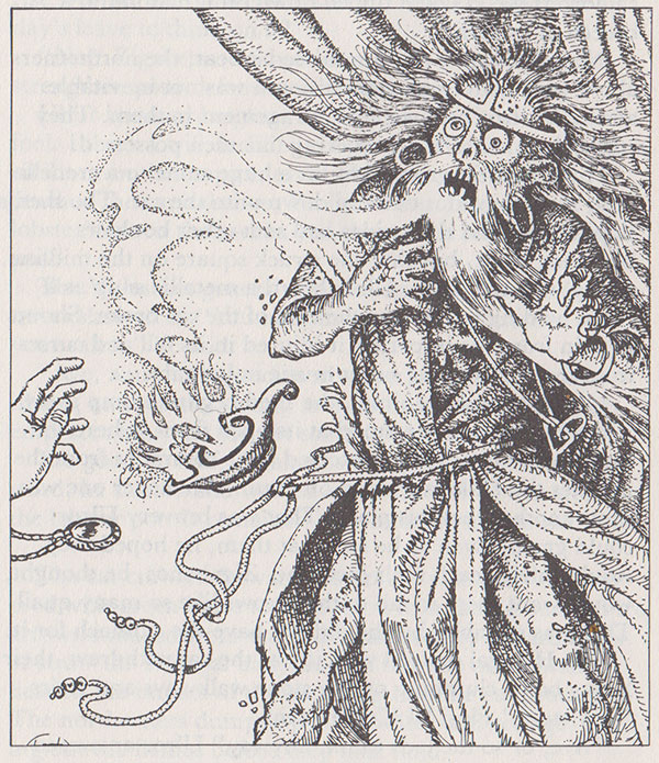 “Easy as 1, 2, 3” is an uninformatively titled article on creating “interesting NPCs” by Rick Swan (presumably the same Rick Swan who’d go on to write several of the “Complete” class books from 2E). In this article, he posits a method of creating NPCs that seems a little too involved (I fear I grow repetitive). He describes an elaborate listing of adjective features for the NPC (based in part on Gygax’s tables in the DMG, which Swan criticizes for their vagaries and overuse of synonyms) to create a profile for the NPC, and even suggests “testing” these profiles to prep for games by imagining them in different scenarios responding to the PCs. This article really reads like something he thought up but can’t imagine him really doing? I somehow feel naïve if I accept either possibility. I think the idea of jotting down a few adjectives for an NPC you have to create on the fly as a way to remember them for a possible future encounter is not a bad idea, but all this pre-prep? It feels like a waste of time (and this from a guy who does A LOT of prep compared to many GMs).