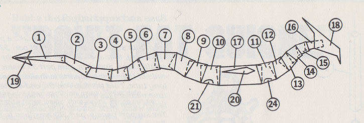 Looking at the instructions now, there is a lot of scoring and folding and gluing. The diagram for assembling the neck and tail is dredging up traumatic memories of trying it that I thought were long erased. It is made up of 16 telescoping paper cylinders arranged just so. And I don’t think I ever succeeded in assembling the stand to make it look like it was flying.