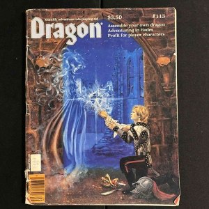 With Dragon Magazine #113 (September 1986), we are entering the era when I can safely say I acquired every issue I bought from the stand at the Compleat Strategist in midtown Manhattan. Before that, there was a small chance I picked it up at Forbidden Planet NYC, back in their original location, when the downstairs was dedicated to comic book back issues and role-playing games. I don’t have a specific memory of buying it.